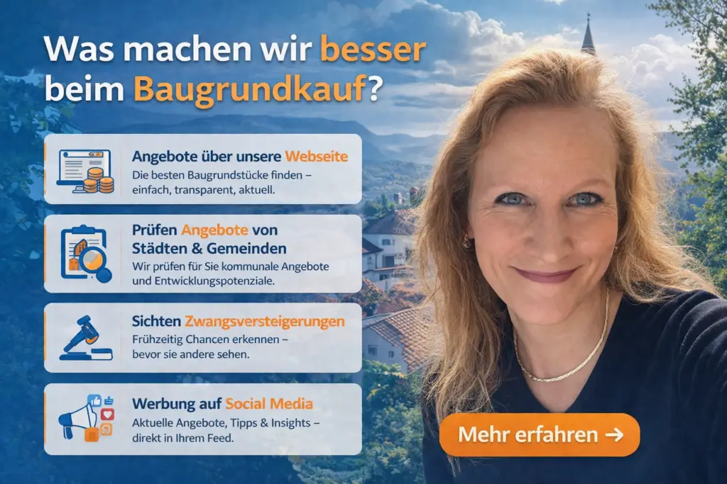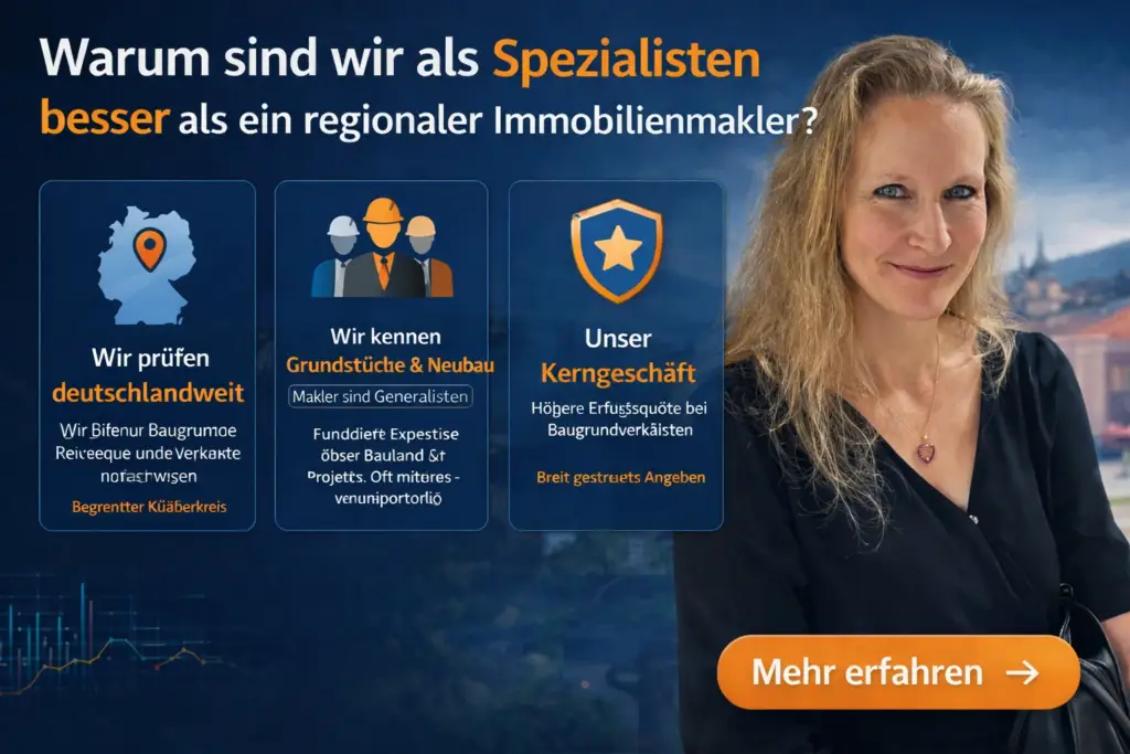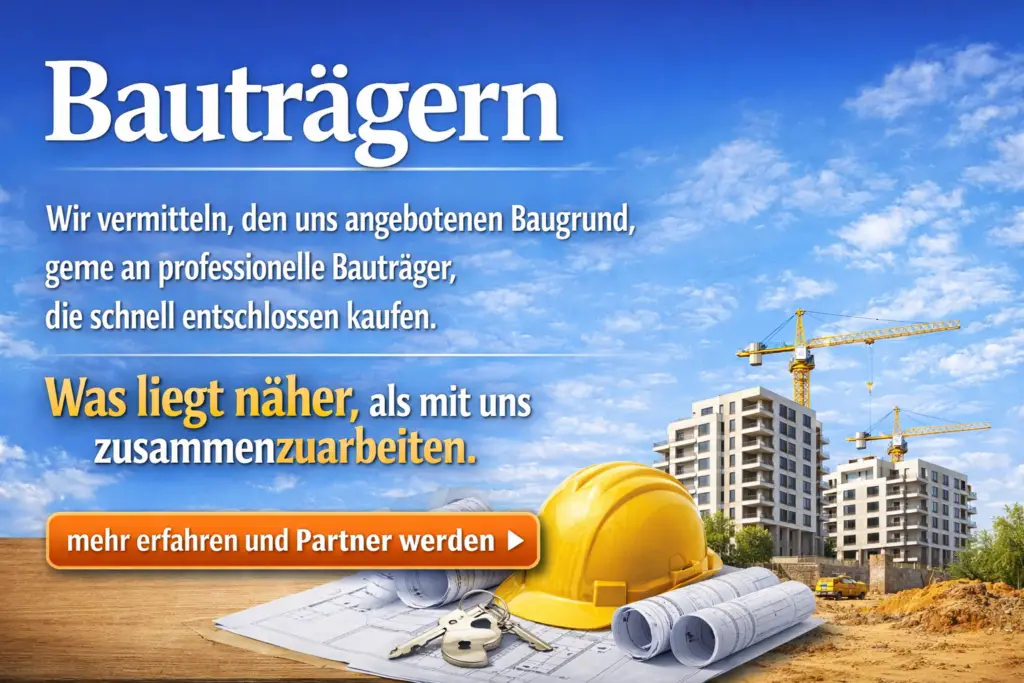 Baugrundverkauf Wir verkaufen Ihren wertvollen Baugrund zum besten Preis und arbeiten, bundesweit, mit Bauträgern, privaten Bauherren und Investoren zusammen jetzt mehr erfahren